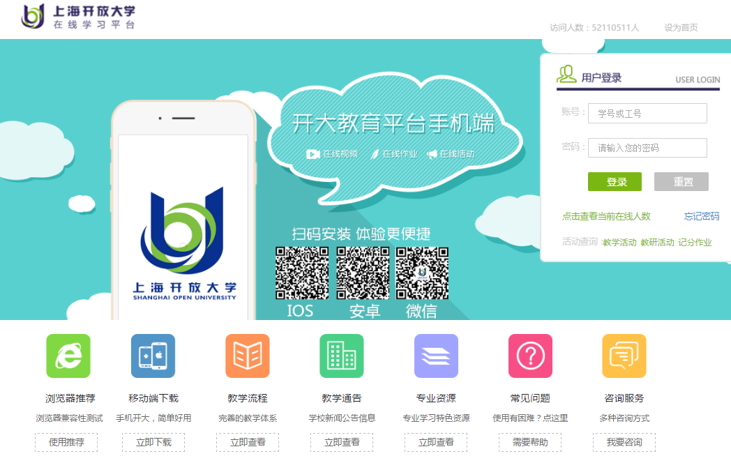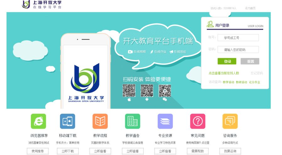 操作步骤1:访问上海开放大学网站http://www.shou.org.cn/或http://www.sou.edu.cn/。