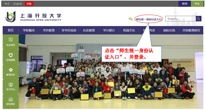操作步骤1:访问上海开放大学网站http://www.shou.org.cn/ 或http://www.sou.edu.cn/。
