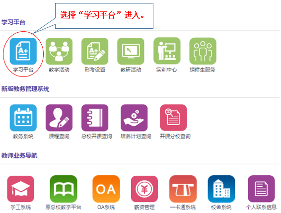 操作步骤3:进入“学习平台”、修改“个人联系信息”。