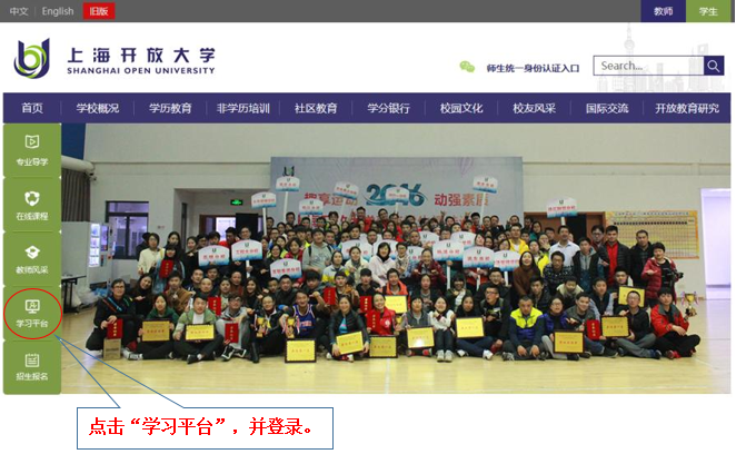 操作步骤1:访问“学习平台首页”http://learning.shou.org.cn/。